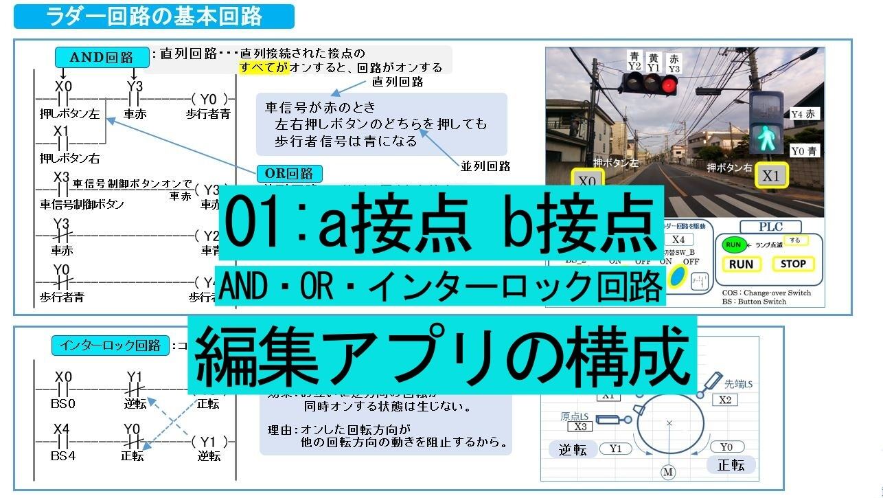 2:作成するラダー回路(a・b接点,AND・OR回路、インターロック回路)の説明図