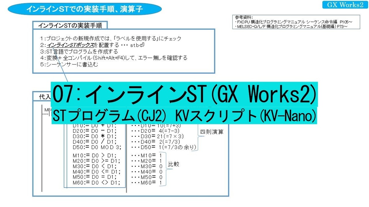 資料07_インラインST(GX Works2)/STプログラム(CJ2)/KVスクリプト(KV-Nano)_オンライン実機演習60分付き