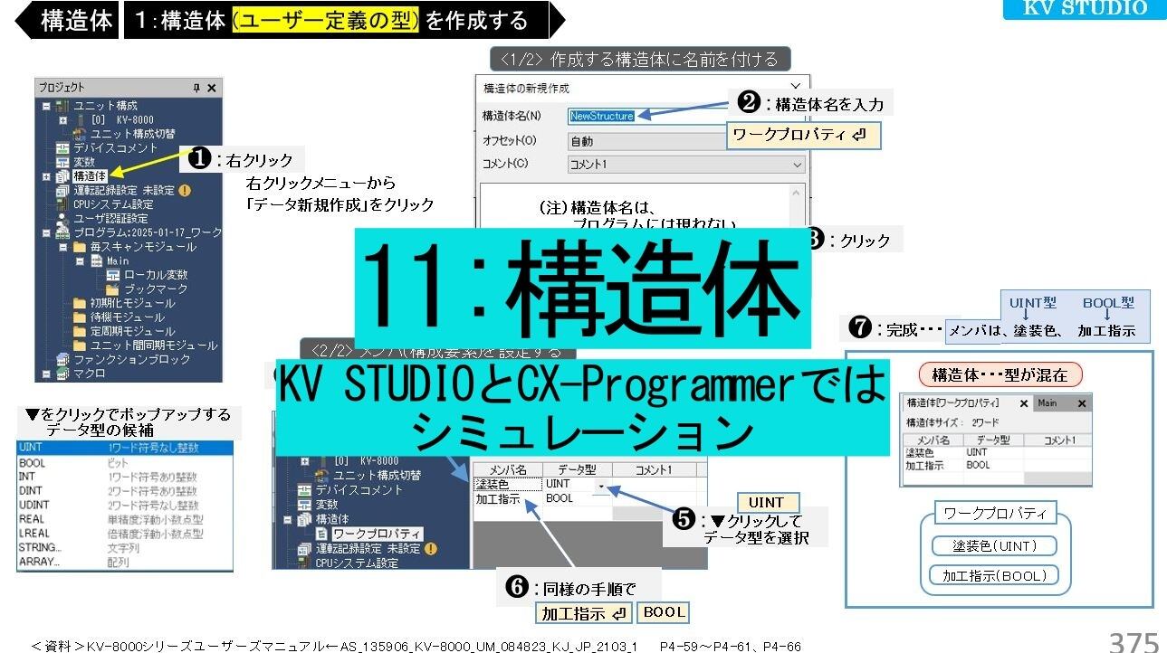 ・KV STUDIO(KV-8000)とCX-Programmer(CJ2)ではそれらのシミュレーション機能使用での演習です。